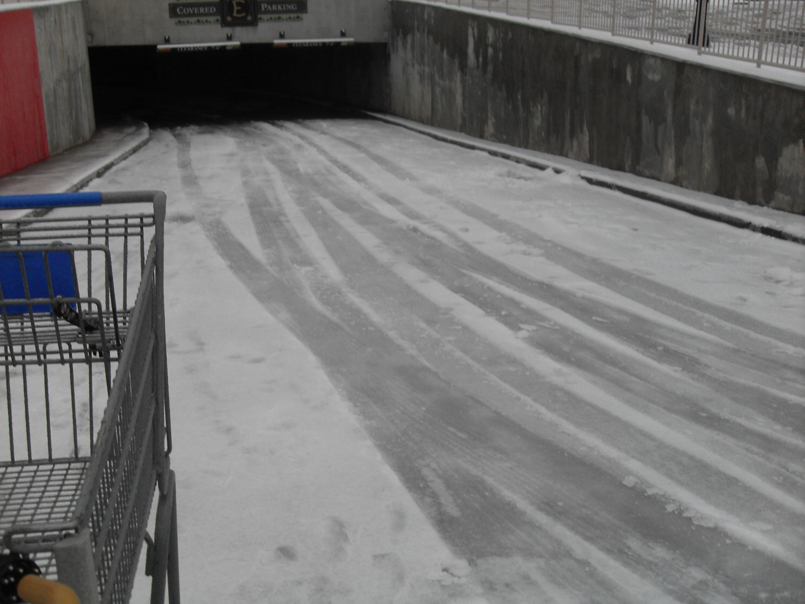 I made it to the grocery store, spent about 30 minutes and $10 on some stuff I didn’t particularly need while the inner 8-year-old cheered. Now I had to walk back home, still less than a mile but seemingly longer than that with all the concentration it takes to stay upright and now I have to do so with a bag a groceries across Atlanta’s frozen landscape. I had $2 in my pocket, I started scanning the parking lot for nice people to ask for a ride as I’m not built for this snow walking mess! I’ve got to get my mind right, I’ve got to gear myself up. While I did so, I watched these folks make great use of a barely used part of the shopping center’s parking deck.