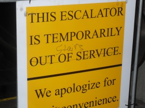 It takes no time to get from the house to the station where I find that the escalator is broken but I’m thrilled to know that someone else in my neighborhood is also familiar with the comedy stylings of Mitch Hedberg…