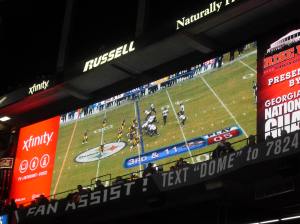 It’s cold outside and since I don’t like being cold we made our way inside…its about 7:15, kickoff isn’t for another hour or so. The good people in the Dome had the Steelers/Ravens game on the screens inside turning the place into the world’s largest sports bar for about an hour or so.