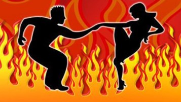 He’s a good dancer, so good that apparently it doesn’t matter what he wears to the spot. He had on some black shoes made from some former swamp dweller – crocodile, alligator, snapping turtle, who knows – with the exaggerated pointy toe that was turned up like the 80s wrestler, The Iron Sheik; his jacket was brown and looked crocheted to be honest with you, his skinny jeans were extra, extra skinny, it’s highly likely that if you looked hard enough you may have been able to see his pulse through the denim. For heaven’s sake, he was so cool on the dance floor that he didn’t even take off his scarf, a thick grey number that was tied around his neck which was great for the 30 degrees outside but completely out of place for the sweat box that the dance area had become. But none of that mattered as he broke out double and then triple spins and then spun her more times than anyone could count. They were a silky blur feeding off of one another’s talent; whirling and moving and shining their way through Curet Alonso’s “Caonabo”…